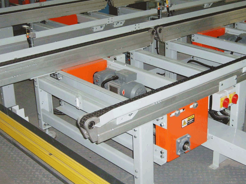 链式输送机以链条作为牵引和承载体输送物料,链条可以采用普通的套筒滚子输送链,也可采用其它各种特种链条(如积放链,倍速链)。输送能力大,主要输送托盘、大型周转箱等。结构形式多样,易于实现积放输送以及与提升机、堆垛机、转向输送机、拆叠托盘机等搭配使用。
