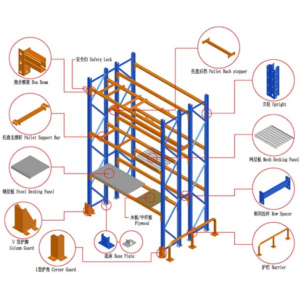 各种仓储货架系统中最为常见一种货架形式,以立柱片+横梁形式的全组装结构。可根据存储单元集装设备的特性加装如:隔档、钢层板(木层板)、金属丝网层、仓储笼导轨、油桶架等功能性附件,满足不同单元集装设备形式的货物存储。